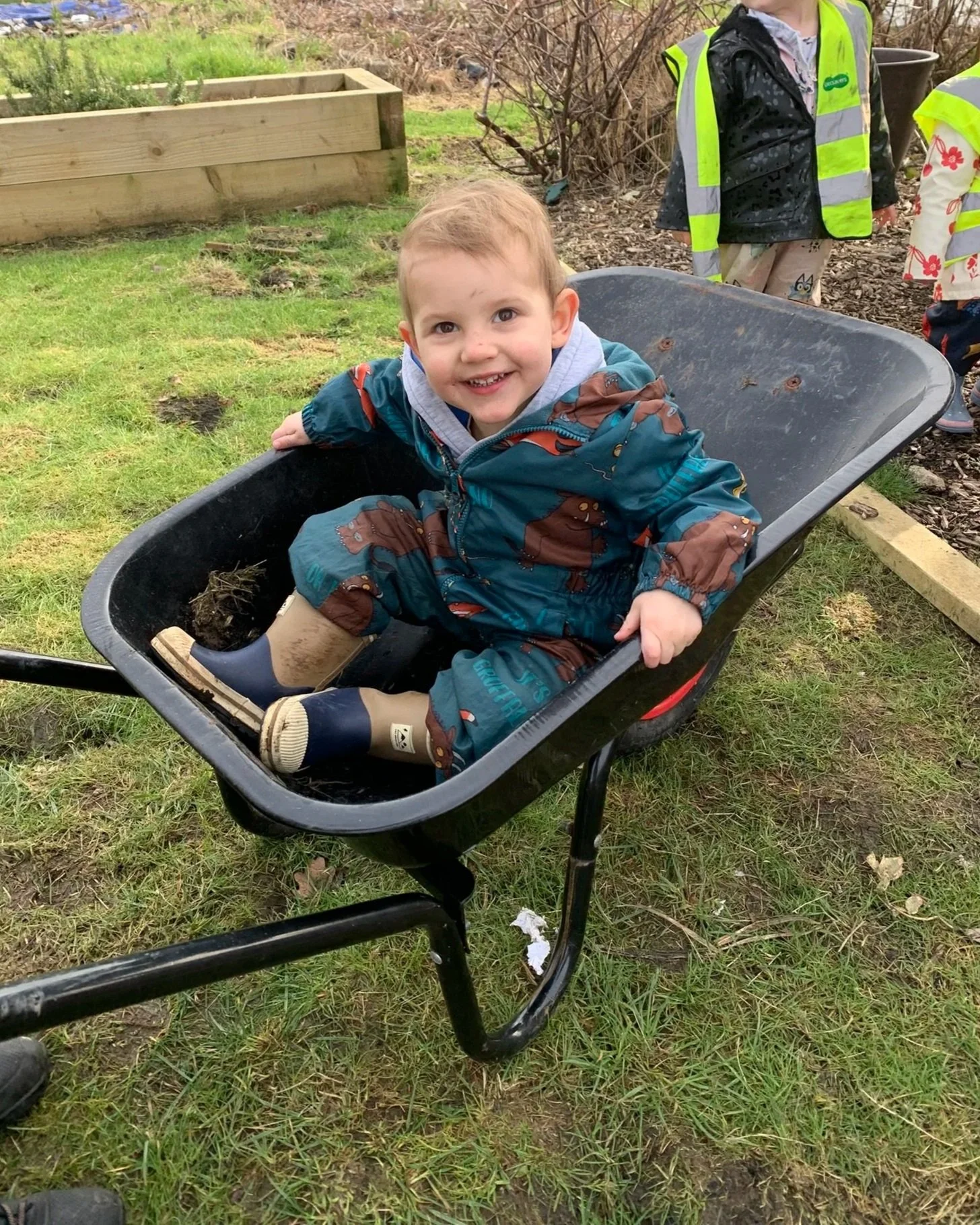 Our toddlers and preschoolers have also been enjoying cosy hot chocolates made with our kettle and taking turns riding in the wheelbarrow — making special memories while embracing the outdoors.