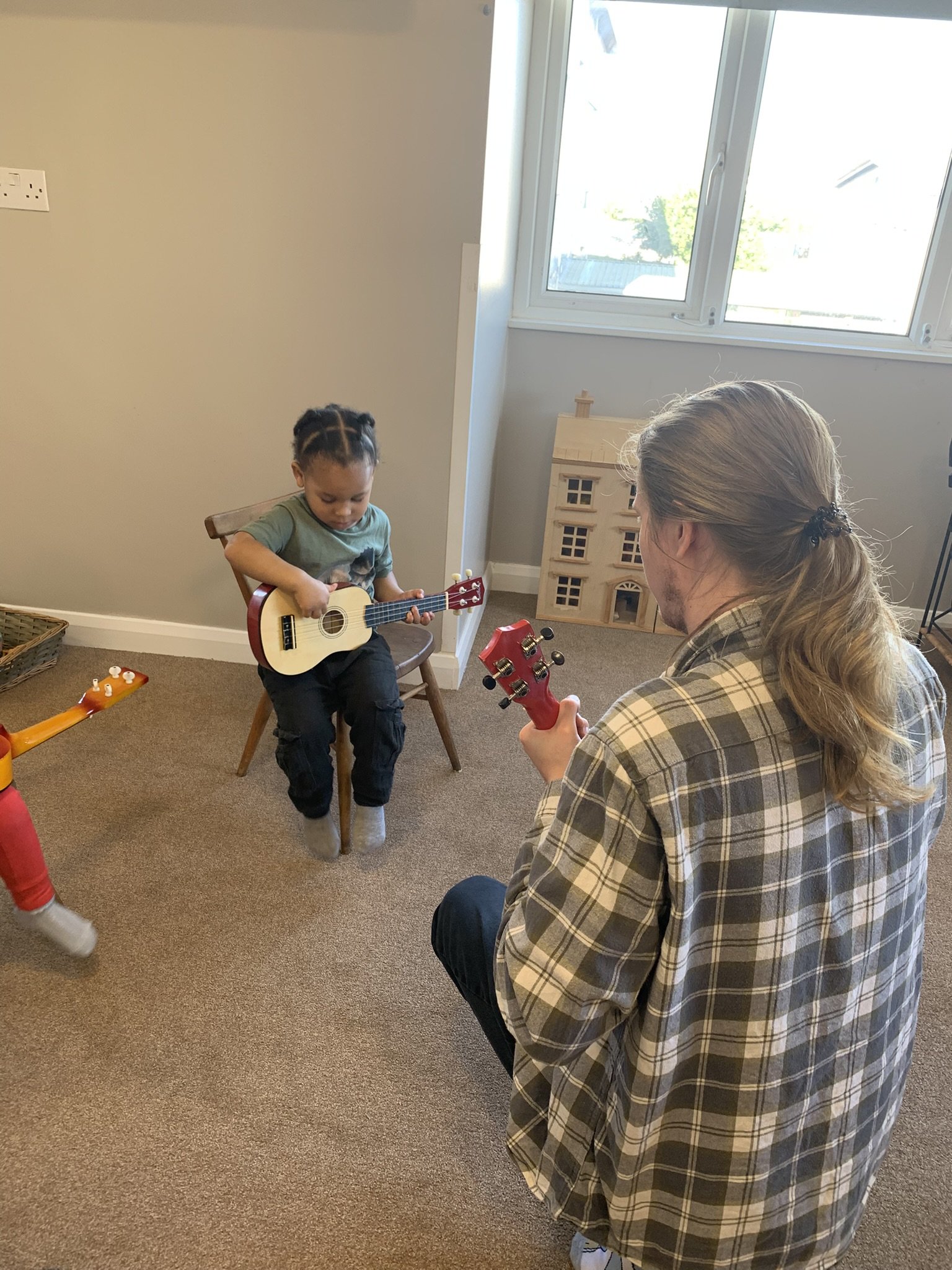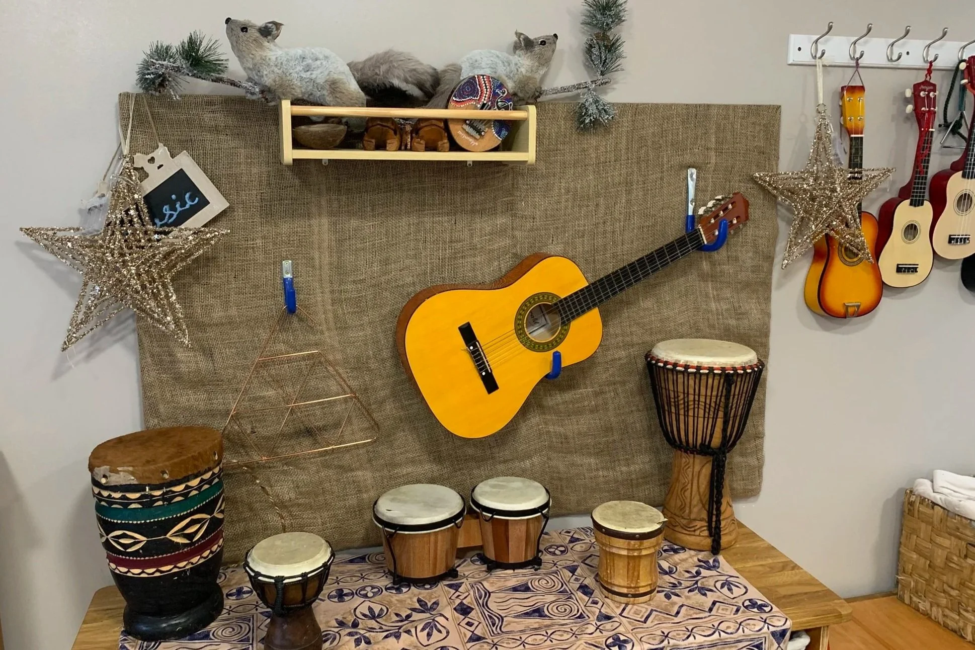 Music sessions with a variety of real instruments—from tambourines and drums to xylophones and shakers